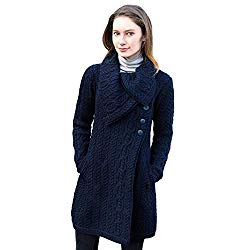 Merino Wool Aran Crafts 3 Button Long Cardigan