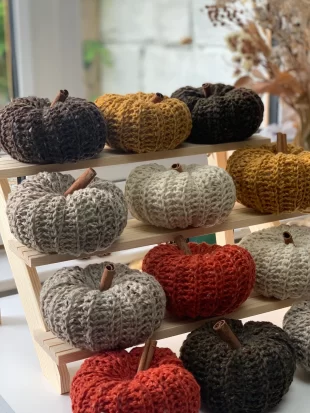 These crochet pumpkins by LianneReillymakes are the perfect Thanksgiving table centrepiece and home decor for autumn and Halloween. Each are handmade with 100% soft merino wool from Donegal Ireland, finished with an organic cinnamon stick. These gorgeous pumpkins come in different sizes.