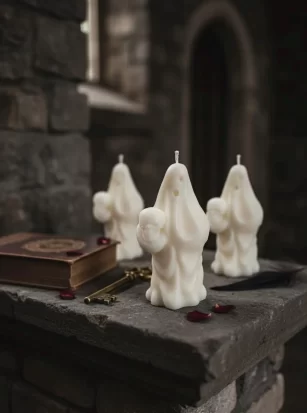 Halloween Candle Ghost with Skull, Natural Soy Wax by NiaAni