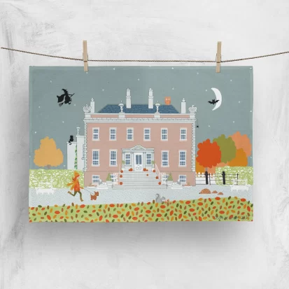 This autumn Halloween scene at Newbridge House in North County Dublin is captured on a tea towel. It features hand-drawn motifs of the beautiful surroundings of Newbridge House. All the motifs are hand-drawn before being digitally coloured and finished. Each tea towel is 100% cotton, hemmed on all sides, and finished with a handy hanging loop. They make a perfect seasonal, wedding and house-warming gift, or are ideal as a souvenir of the lovely North Dublin county.